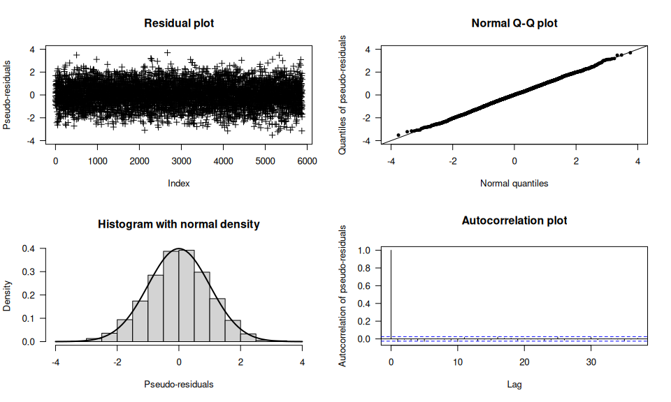 The (pseudo-) residuals help to evaluate the model fit: