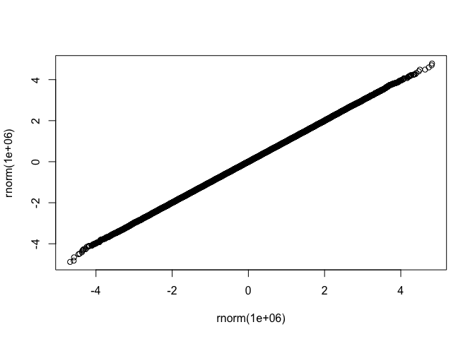 fastqq::qqplot(rnorm(1e6),rnorm(1e6))