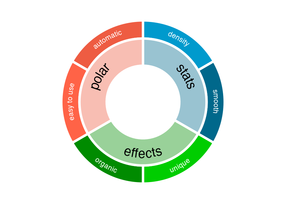 This can be useful to achieve a particular aesthetic effect (as above), but can also be of practical utility when axis labels are long, which can produce some problems in standard coord_polar: