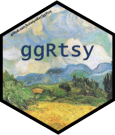 The ‘ggRtsy’ package works with ‘ggplot2’ to add an additional color palette to the user’s repertoire. This is the goghColors dataset, which contains the RGB and hex codes of colors picked from Van Gogh paintings. It has been broken down into an easy-to-use color palette based on Van Gogh’s most famous paintings, in the gogh_palettes_pop list.