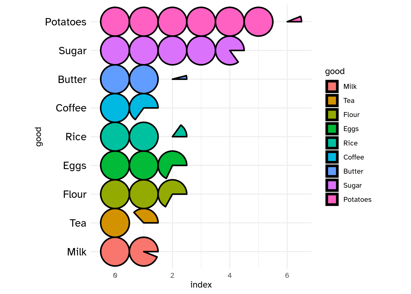 prod_df good = c("Potatoes", "Sugar", "Butter", "Coffee", "Rice", "Eggs", "Flour", "Tea", "Milk"),