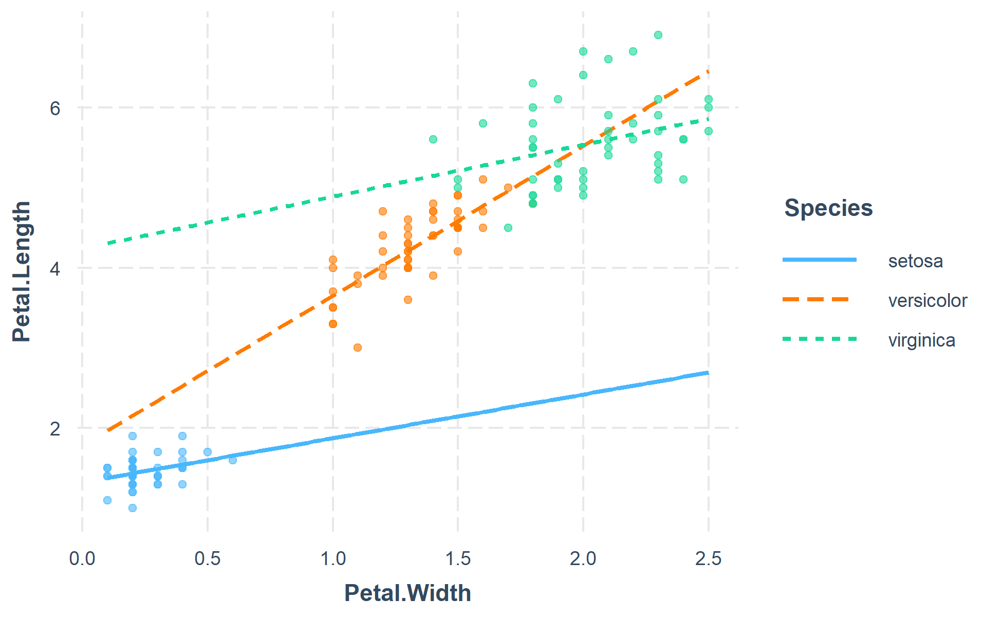fitiris <- lm(Petal.Length ~ Petal.Width * Species, data = iris)