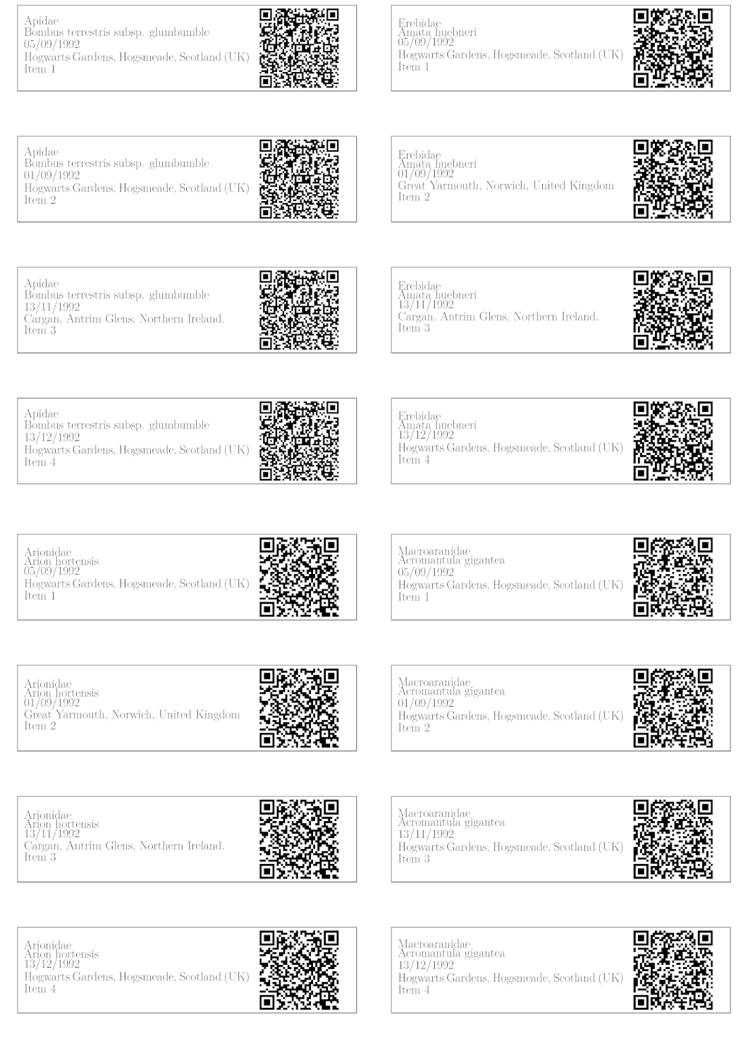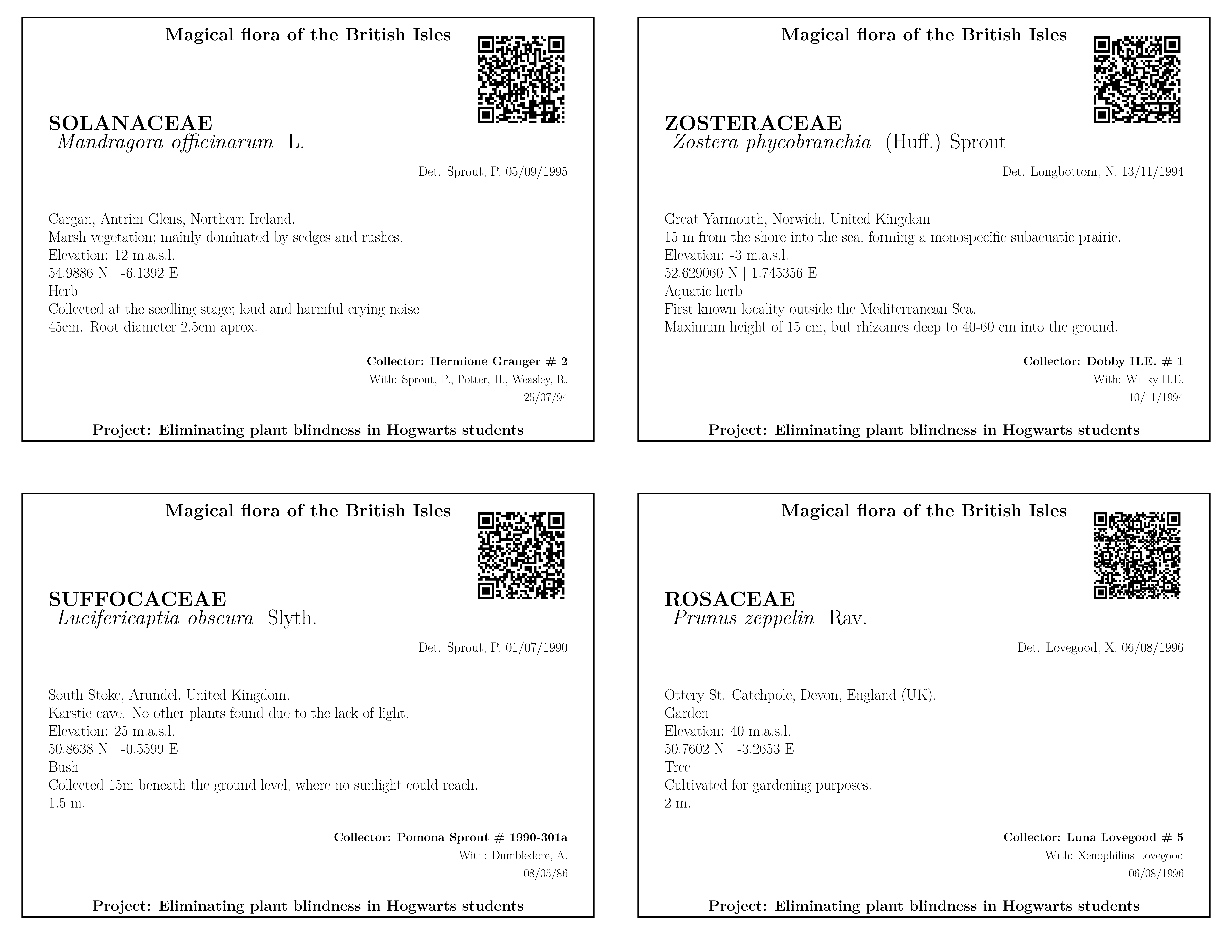 If you need to create your labels (for your lab, plant vouchers, insect collections), attendance, participation certificates or accreditation badges (to a course, a congress)… labeleR is the answer! Decide which function to use, copy the code into your console, modify it and run! Keep an eye 👀 on this easy tutorial on how to use it 👇