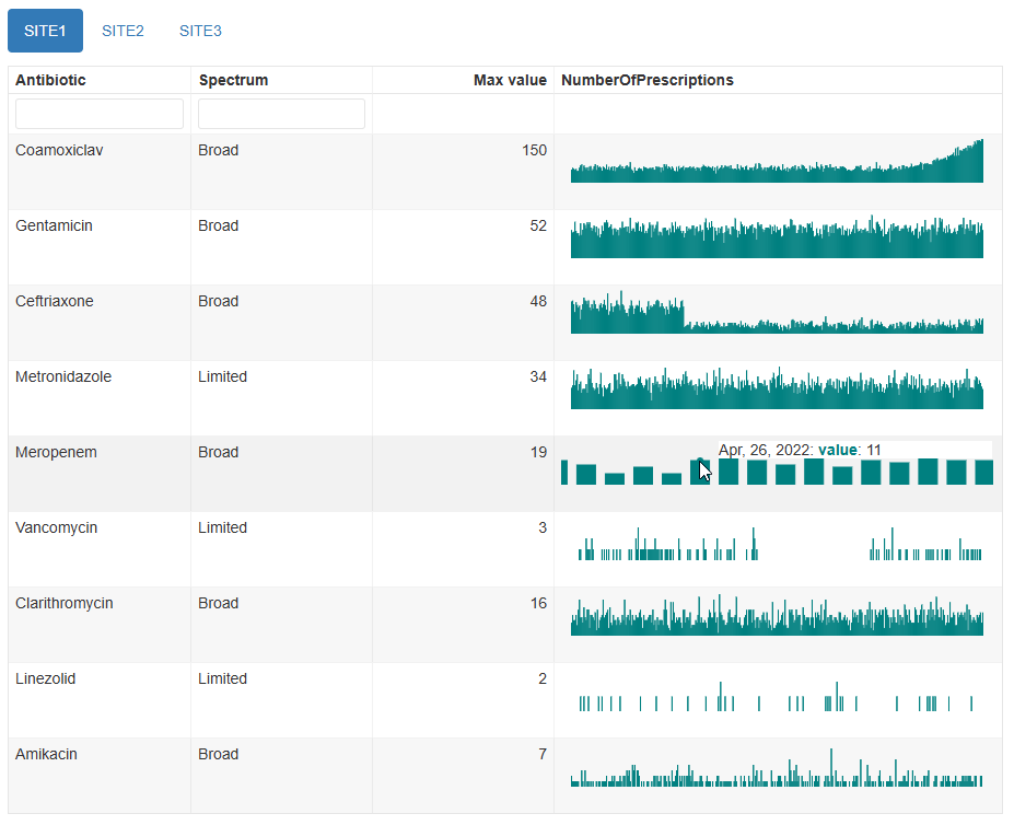## PrescriptionDate Antibiotic Spectrum NumberOfPrescriptions Location