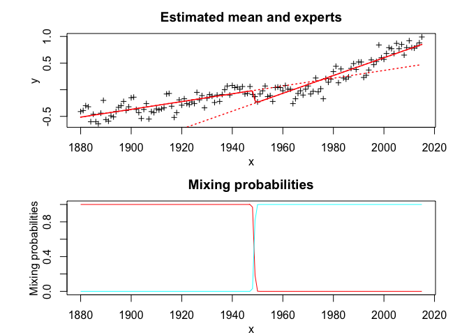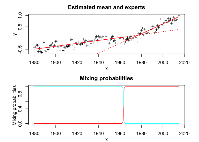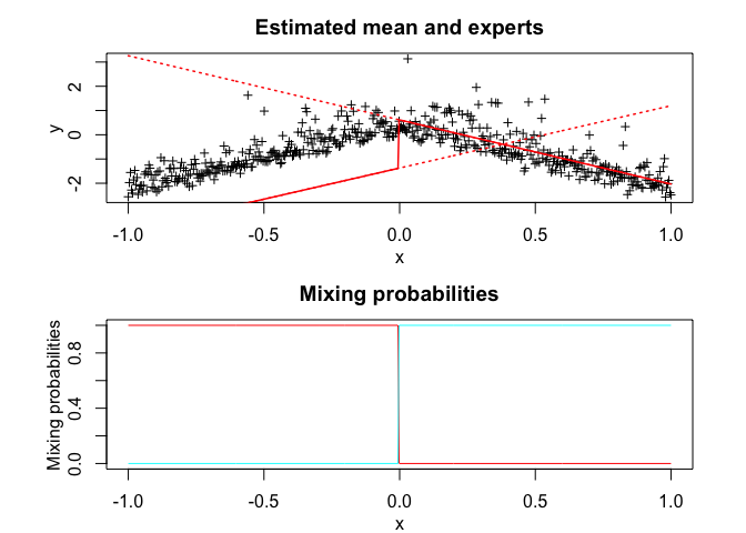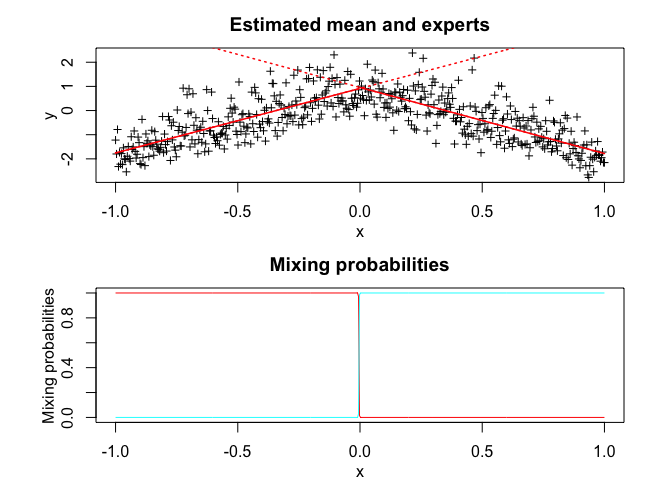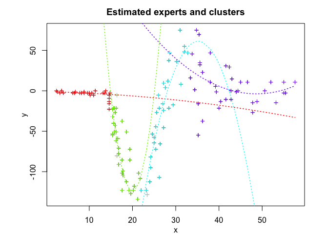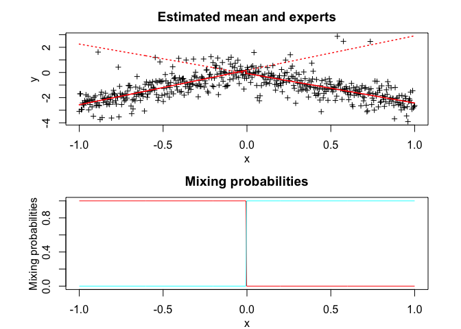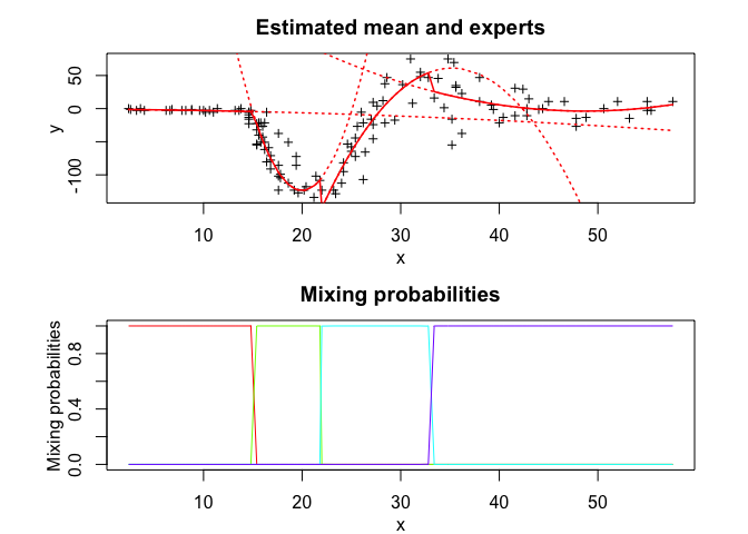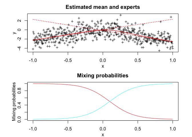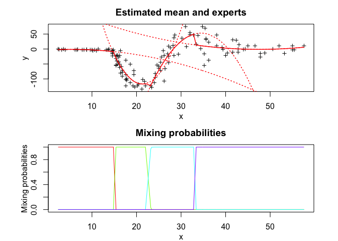nmoe #> EM NMoE: Iteration: 1 | log-likelihood: -850.659719240158