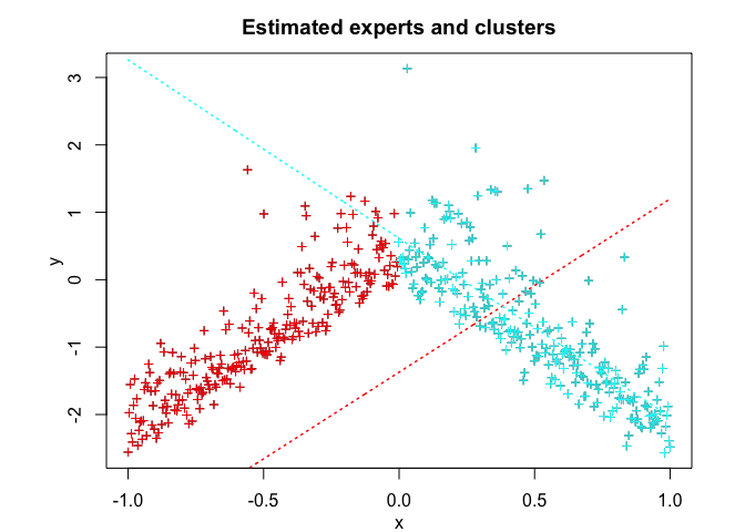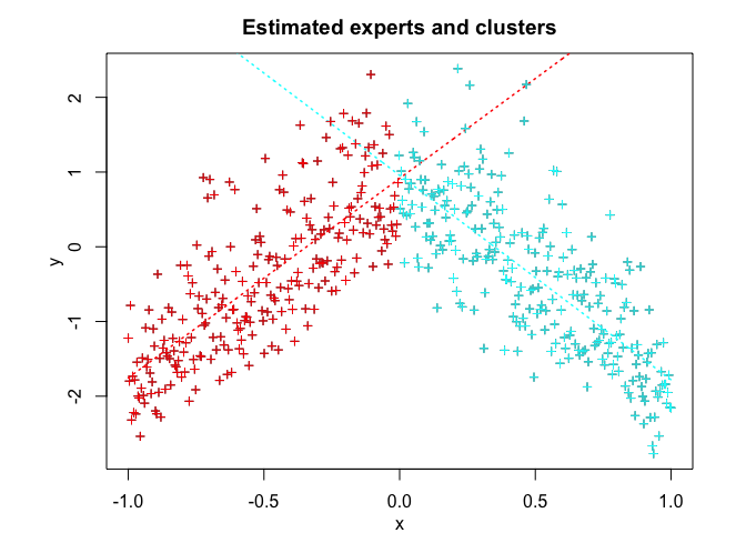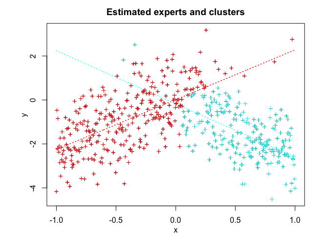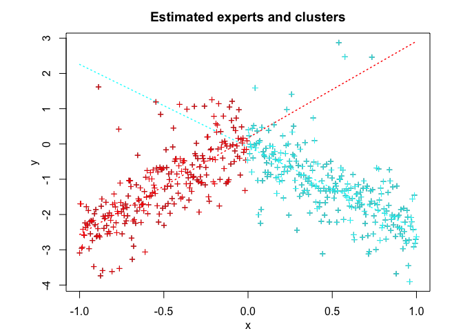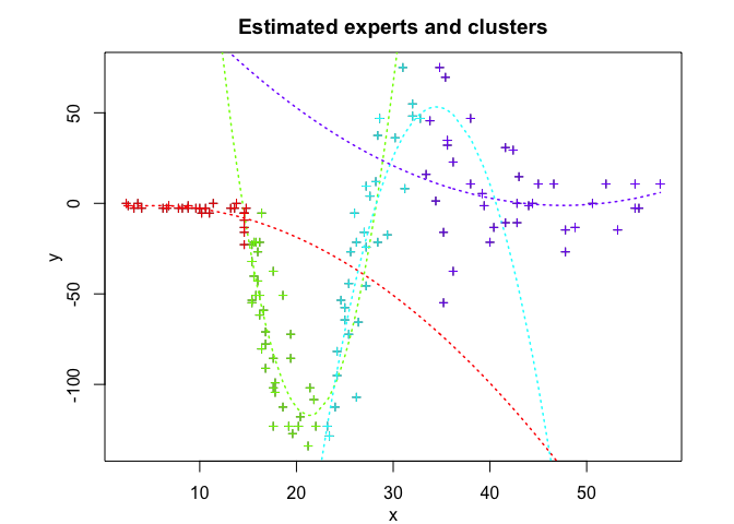 nmoe #> EM NMoE: Iteration: 1 | log-likelihood: 48.3988726040827