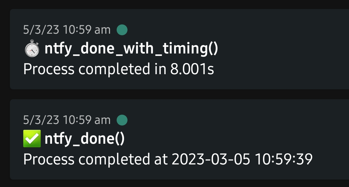 curl -d "Process Complete 😀" ntfy.sh/yourSecretTopic