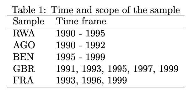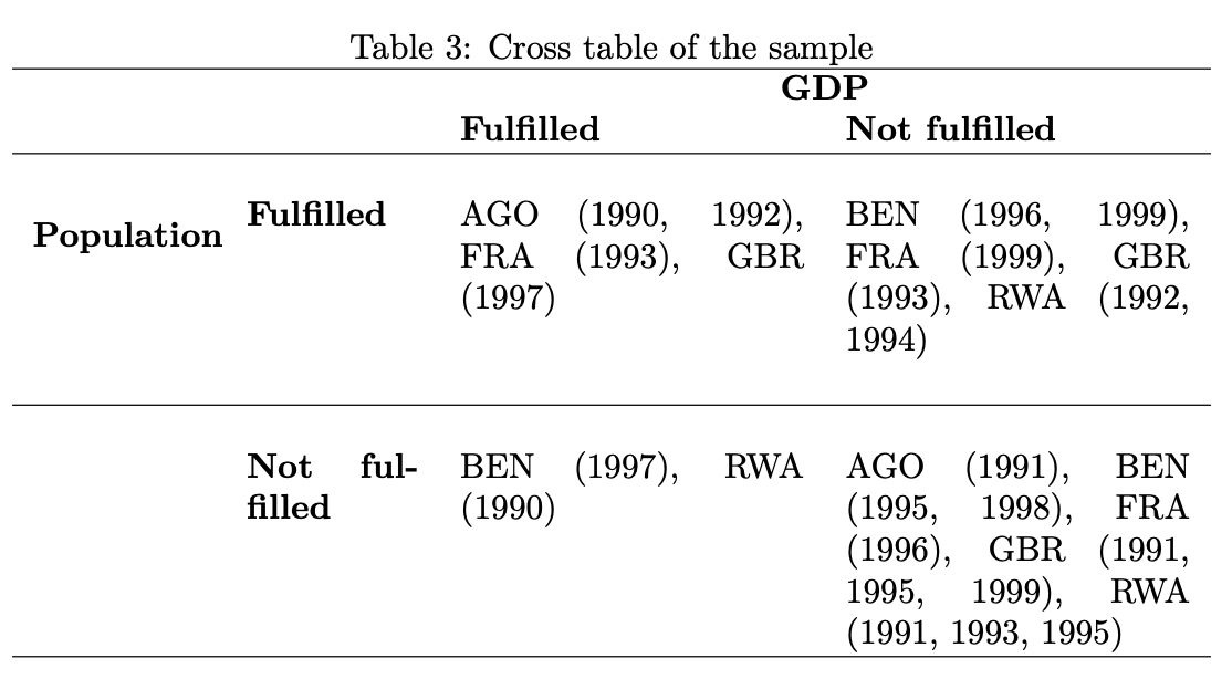 Shows cross-table based on country-year units | ✓ | ||||||||