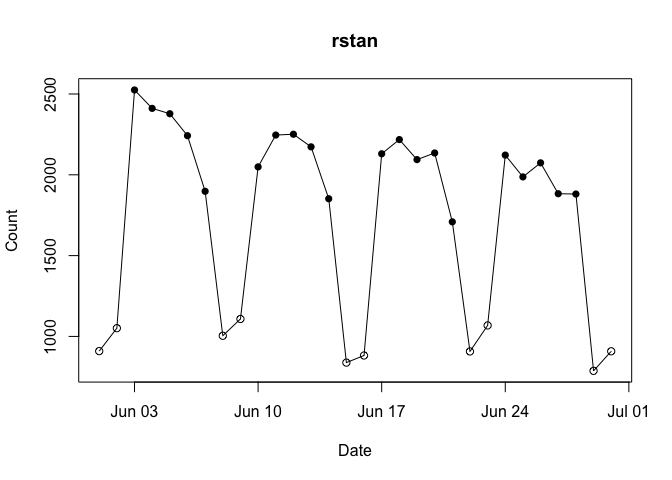 cranDownloads(packages = "rstan", from = 2020, to = 2020)