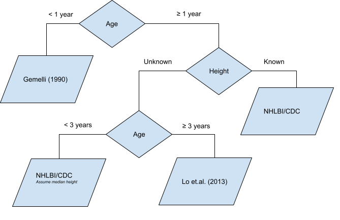 Blood pressure percentiles are based on Gaussian distributions defined by published values for the mean and standard deviation, or derived mean and standard deviations based on published percentiles. Growth standards are based on LMS approximations. All the methods get parameters based on lookup tables.