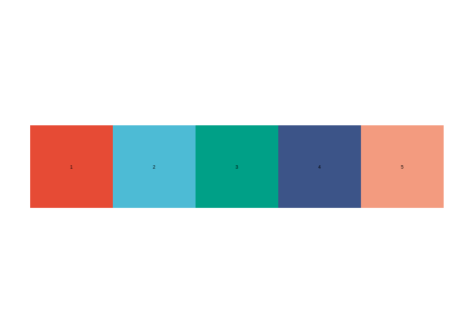 package presetssci_colors("npg", 5) %>% plot_colors()