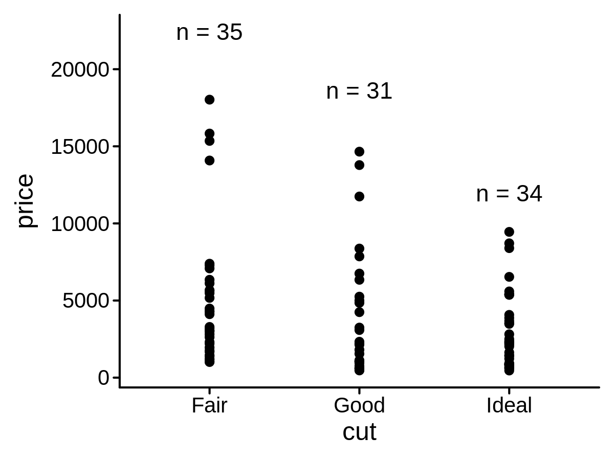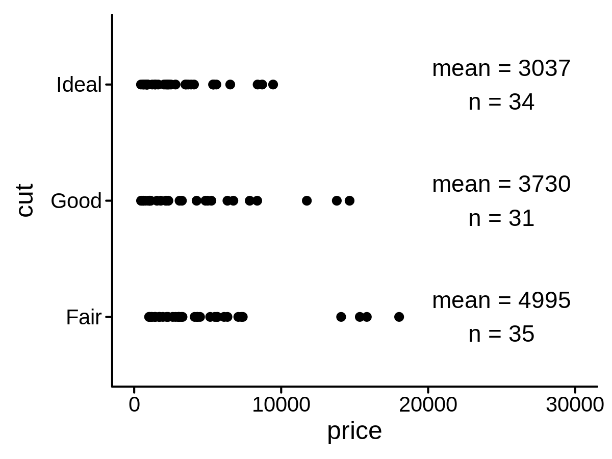 lab_func str_glue("mean = {round(mean(x))}\nn = {length(x)}")