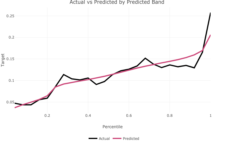 actual_expected_bucketed() creates actual vs expected performance plots by predicted band.