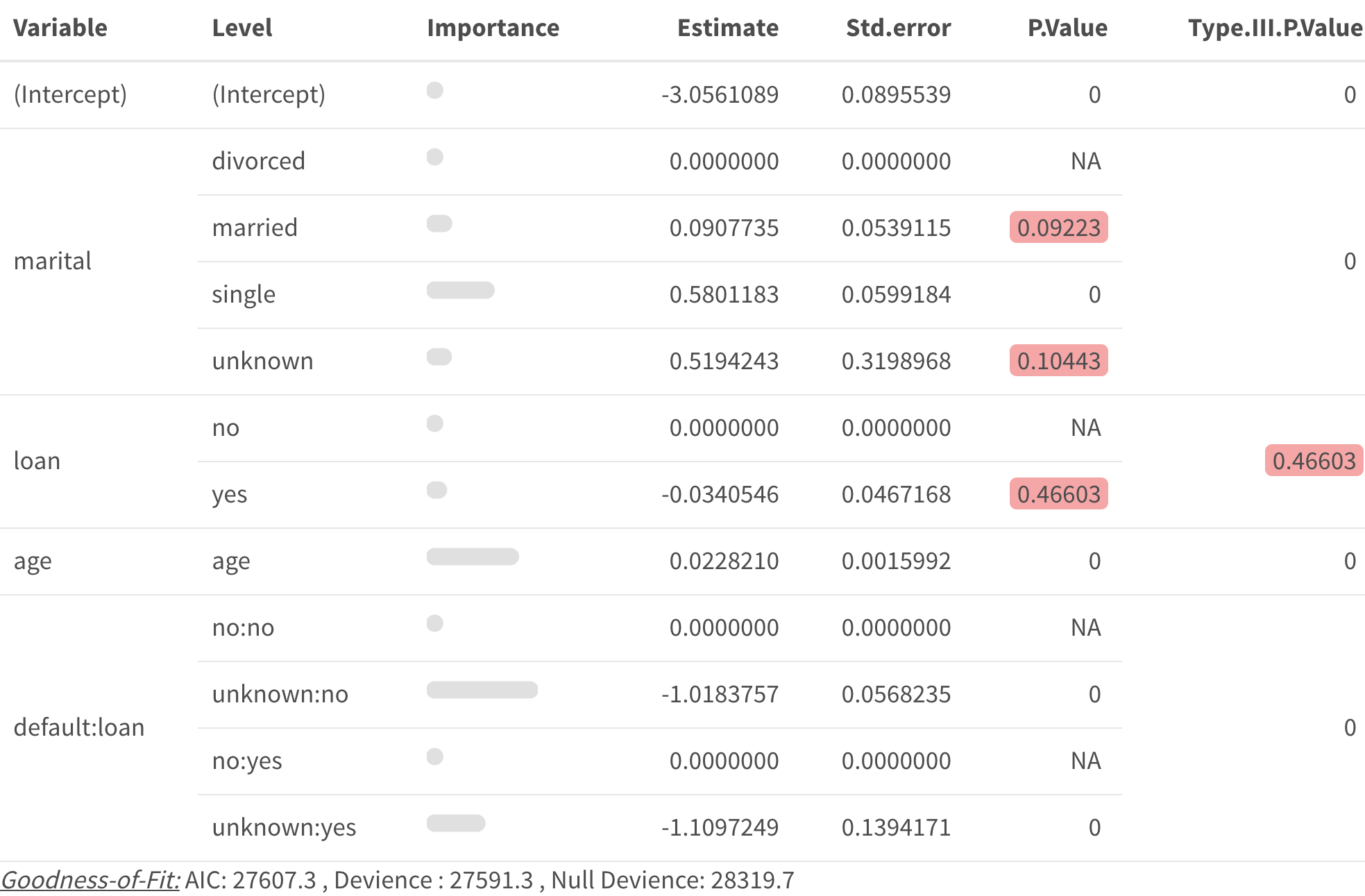 To explore the functionality of prettyglm we will use a data set sourced from kaggle which contains information about a Portugal banks marketing campaigns results. The campaign was based mostly on direct phone calls, offering clients a term deposit. The target variable y indicates if the client agreed to place the deposit after the phone call.