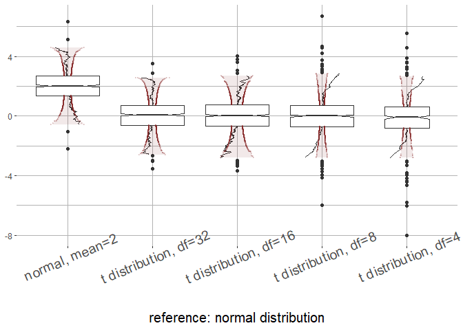 geom_qqboxplot(notch=TRUE, varwidth = TRUE, reference_dist="norm") +