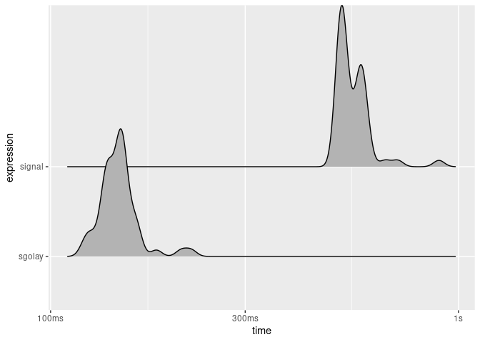 timing signal = apply(x, 2L, function(s) signal::sgolayfilt(s, filt)),