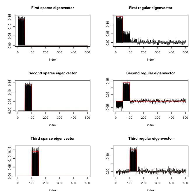 We start by loading the package and generating synthetic data with sparse eigenvectors: