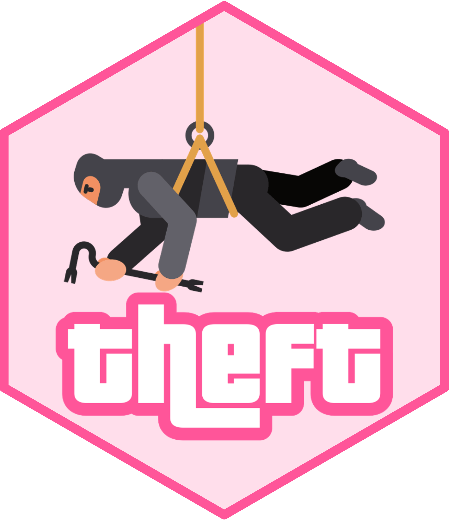 Hex stickers of the theft and theftdlc packages for R
