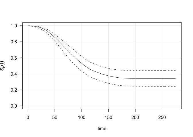 print(tail(obj$Sp,n=1)) ## Cure probability
