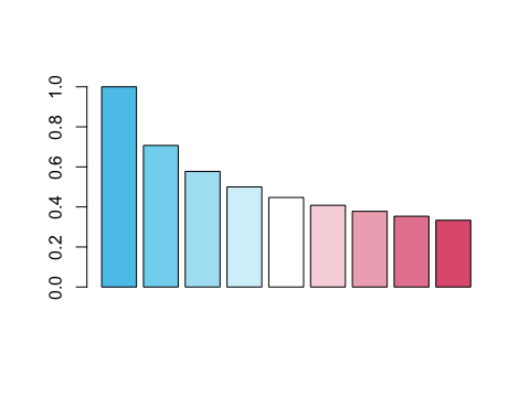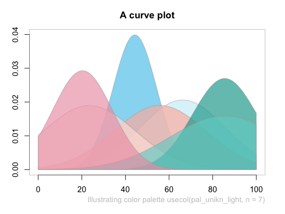 Colors and color palettes in R come in various types (e.g., as named colors, RGB values or Hex codes) and forms (e.g., as data frames or vectors). The usecol() function provides a generic wrapper for changing (e.g., mixing and re-scaling) and using color palettes. This allows using colors in base R and most other R packages. For instance, we can easily use colors in combination with