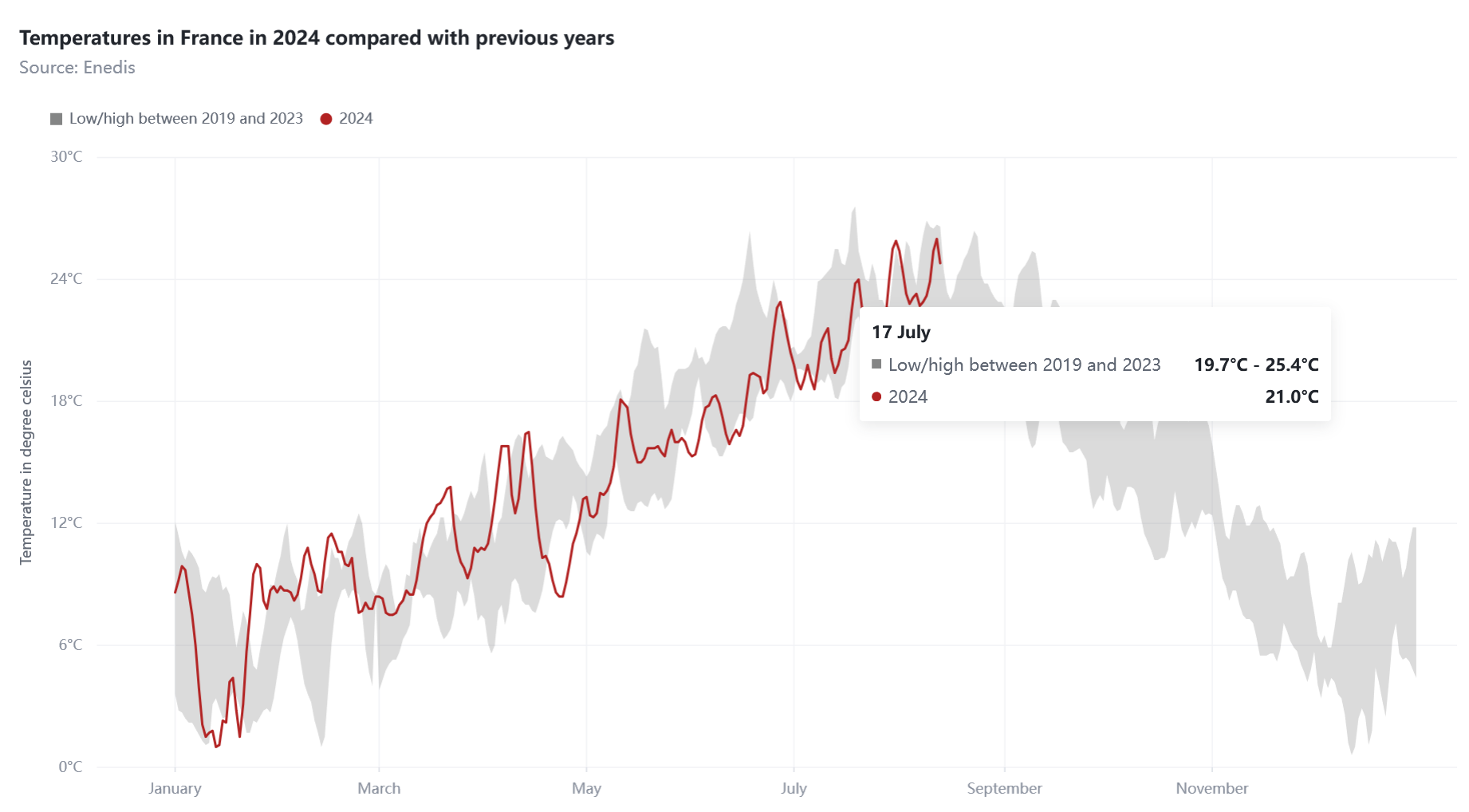 title = "Temperatures in France in 2024 compared with previous years",