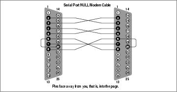 Puede haber visto otros diseños de cables de módem nulo, pero éste le permite usar control de flujo por hardware, que es mucho mejor que el control de flujo XON/XOFF o a no tener control de flujo en absoluto. La configuración del conductor se muestra en Figura B-2: