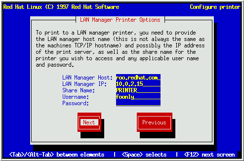 Impresoras con LAN Manager Si ha seleccionado ``LAN Manager'' como la conexión a su impresora, verá una caja de diálogo similar a la de la figura 39.