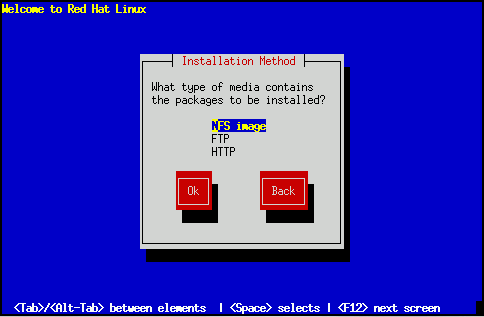 Ahora debe decidir qué método de instalación quiere usar (véase la figura fig:inst-net-method). Resalte la elección apropiada y seleccione Ok o pulse Enter.