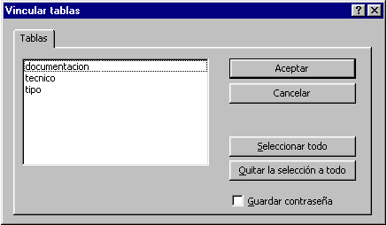 Una vez realizada la conexión a nuestra base de datos remota MySQL, debemos escoger las tablas a vincular.