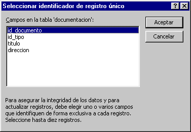 Si las tablas no tienen una clave primaria, MS Access nos pedirá que elijamos una, sino escogemos ninguna no podremos realizar modificaciones sobre la tabla.