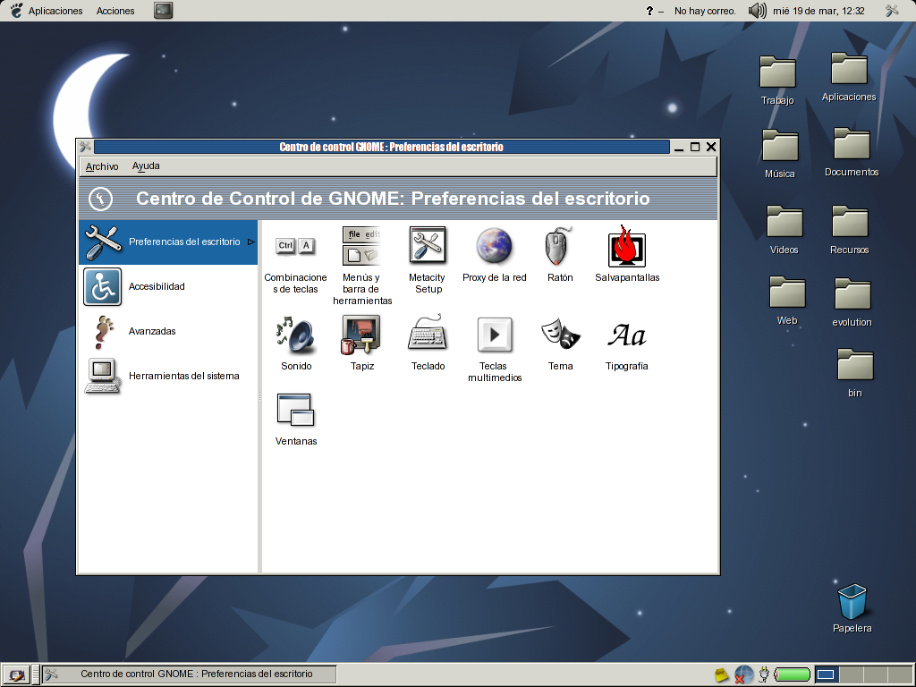 Quizas os pregunteis porque existen dos sitios distintos donde están las aplicaciones del Centro de Control y porque el echo de duplicarlos. ¡No están duplicados! Son el mismo grupo de aplicaciones vistas desde dos puntos distintos, GNOME trabaja con los directorios de una forma especial, posibilitando las vistas de esa manera. Las aplicaciones en el menú no son más que ficheros en un directorio, y las secciones solo meras carpetas.