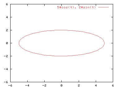 Por ejemplo, para representar las ecuaciones x=5*cos(t), y=2*sin(t):