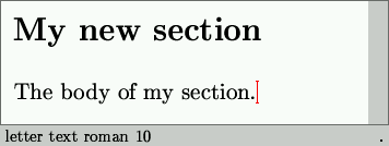 Si nos fijamos el cursor ha cambiado a una letra tamaño 14 y negrita. En la barra de estado, a la derecha, podemos ver que estamos escribiendo una sección.