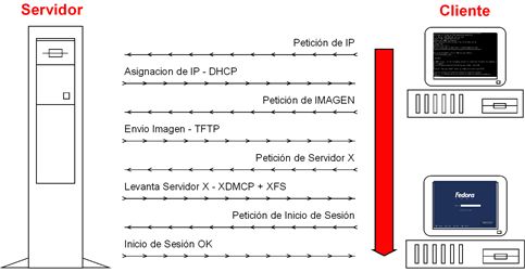 Cliente Ligero: un cliente ligero no es más que una máquina que arranca por la red contra un servidor que le proporciona una sesión interactiva donde además se ejecutaran todas las tareas y programas. http://es.wikipedia.org/wiki/Cliente_ligero