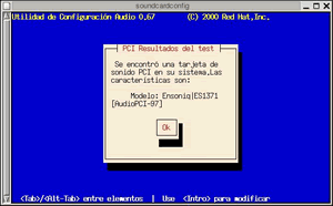 En la que se nos anuncia la ejecución de un test para la identificación de la tarjeta de sonido. Pulsamos sobre OK con lo que accedemos a la siguiente página en la que se nos informa del hardware que se ha detectado: