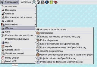 Desde nuestro escritorio, tal y como marca la figura siguiente, accedemos a Aplicaciones->Oficina->Procesador de Textos OpenOffice.org. El programa tardará un poco en aparecer: paciencia. Es un paquete extenso y carga bastantes elementos en memoria al ejecutarse por primera vez para después ir más rápido. Ya estamos dentro, ¿no?. Mis dos primeras preguntas deben ser sin duda: ¿qué?, ¿no ha sido difícil, verdad?