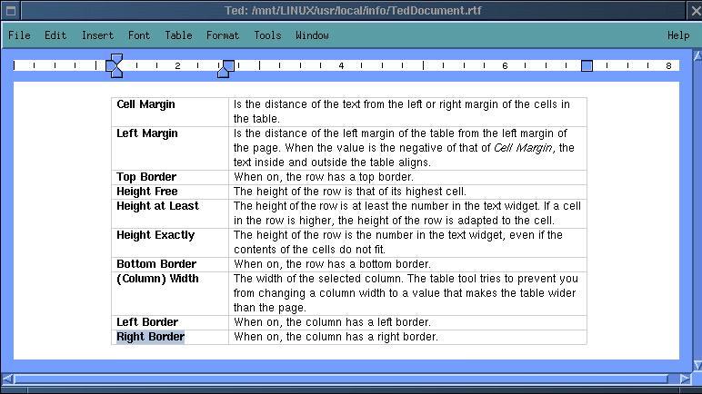 Tedkennt nur ein Leseformat (aber drei Schreibformate): Das RTF Format, anders Rich Text Format, dass den Vorteil hat von der Plattform unabhängig zu sein und von jeder Textbearbeitungssoftware, die diesen Namen verdient, gelesen werden kann. Die Attribute, die man dem Text bei der Formatierung gibt, wie Schriftgrösse, -fette, -typ, Ausrichtungen oder Einzugen werden durch dieses Format erhalten. Anstatt seine Arbeit in Word oder WordPad im Proprietären DOC-Format zu speichern, braucht man es einfach nur im RTF-Format zu sischern um ihn voll und ganz in einer Linuxanwendung zu importieren.