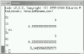 kalc fonctionne également en ligne de commande. Le programme utilise la bibliothèque readline et a quelques fonctions