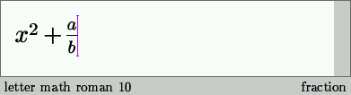 Seguiremos introduciendo ahora unas fracciones. En atajos de teclado sería algo así como: "ALT+F" "a" (cursor abajo) "b" (cursor derecha) . El resultado podría ser algo parecido a esto: