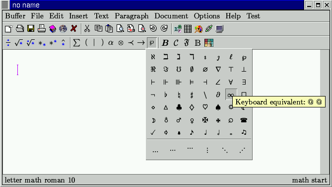 Hay, como siempre, dos formas de introducir un símbolo matemático, bien sea haciendo clic en el icono correspondiente. Creo que sobran las palabras de para que vale cada icono. O bien sea por medio de atajos de teclado. En estas líneas describiré como se hace por atajos de teclado, dejando la parte sencilla para vosotros.