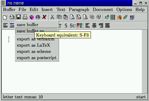 También podemos pulsar SHIFT+F3 como nos sugiere TeXmacs, en el menú que nos aparece.