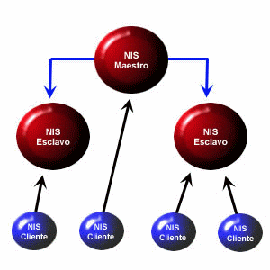 NIS trabaja bajo el modelo de cliente - servidor. Bajo NIS un servidor es una máquina que contiene archivos de datos para NIS, llamados mapas. Los clientes son máquinas que piden información de esos mapas. Los servidores puede subdividirse aún más en maestros y esclavos.