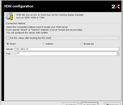 Ahora empezamos a configurar nuestro servidor X, seleccionaremos la versión más moderna, habilitaremos el servidor de fuentes e indicaremos la ip del nuestro. Y luego las características del escritorio.