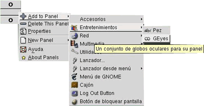 Se te van a ir abriendo una serie de ventanas en cascada para que realices tu selección. Debes elegir la siguiente secuencia: panel > añadir al panel > entretenimientos > gEyes.