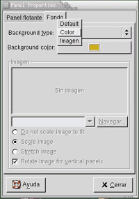 En la solapa "Fondo", elegiremos el color del fondo del panel, podremos utilizar una imagen como tal y definir sus propiedades (ajustar, no ajustar, rotar al cambiar la orientación, etc.)