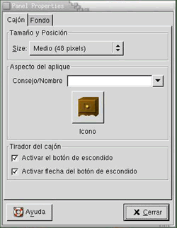 Una vez lo hayas hecho, vamos a modificar las propiedades del panel. Ya sabes, pincha con el botón derecho sobre el cajón y escoge "propiedades". Modifícalas a tu gusto.