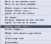 1. Si deseamos guardar una imagen que nos guste de una página web nos situamos sobre ella en la página y pulsando el botón derecho del ratón se abre un menú contextual en el que tendremos que seleccionar la opción Guardar imagen como... |