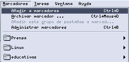 Para visitar la página web correspondiente a uno de los marcadores que tengamos almacenado sólo hay que buscarlo en la correspondiente carpeta y hacer click sobre él. |