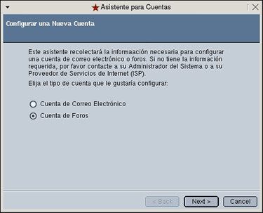 Al igual que pasaba con Evolution, si queremos configurar una nueva cuenta (de correo o noticias en Mozilla Mail) debemos seguir los siguientes pasos (pues ya no aparece el asistente al abrir el programa):