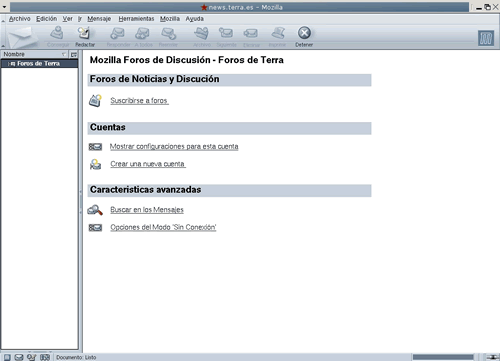 Para obtener acceso completo a los foros se necesitan dos cosas: tener instalado en el ordenador un cliente de foros (en GuadalinexEDU contamos con Mozilla Mail) y un servidor de noticias al que conectarnos (ya tenemos el de Terra después de abrirnos la cuenta de correo).